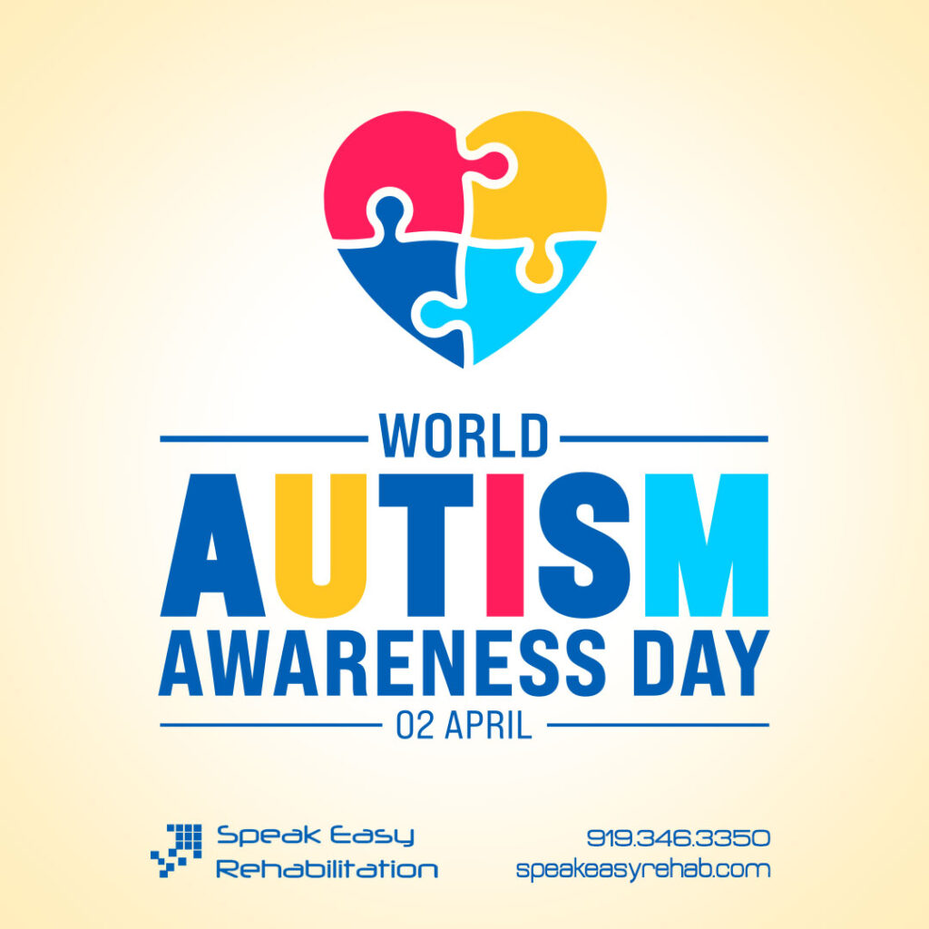 Speak Easy Rehabilitation helps people with Autism face communication, sensory and physical challenges every day! Call us at 919.346.3350 to schedule a consultation today!